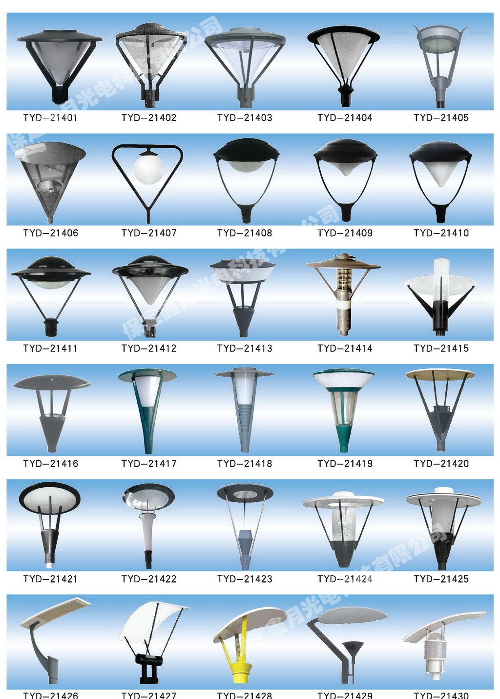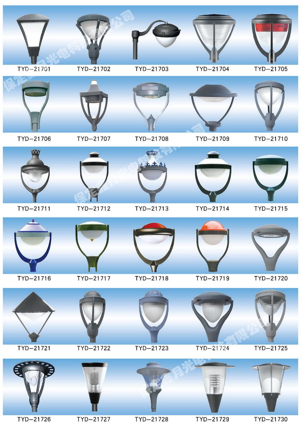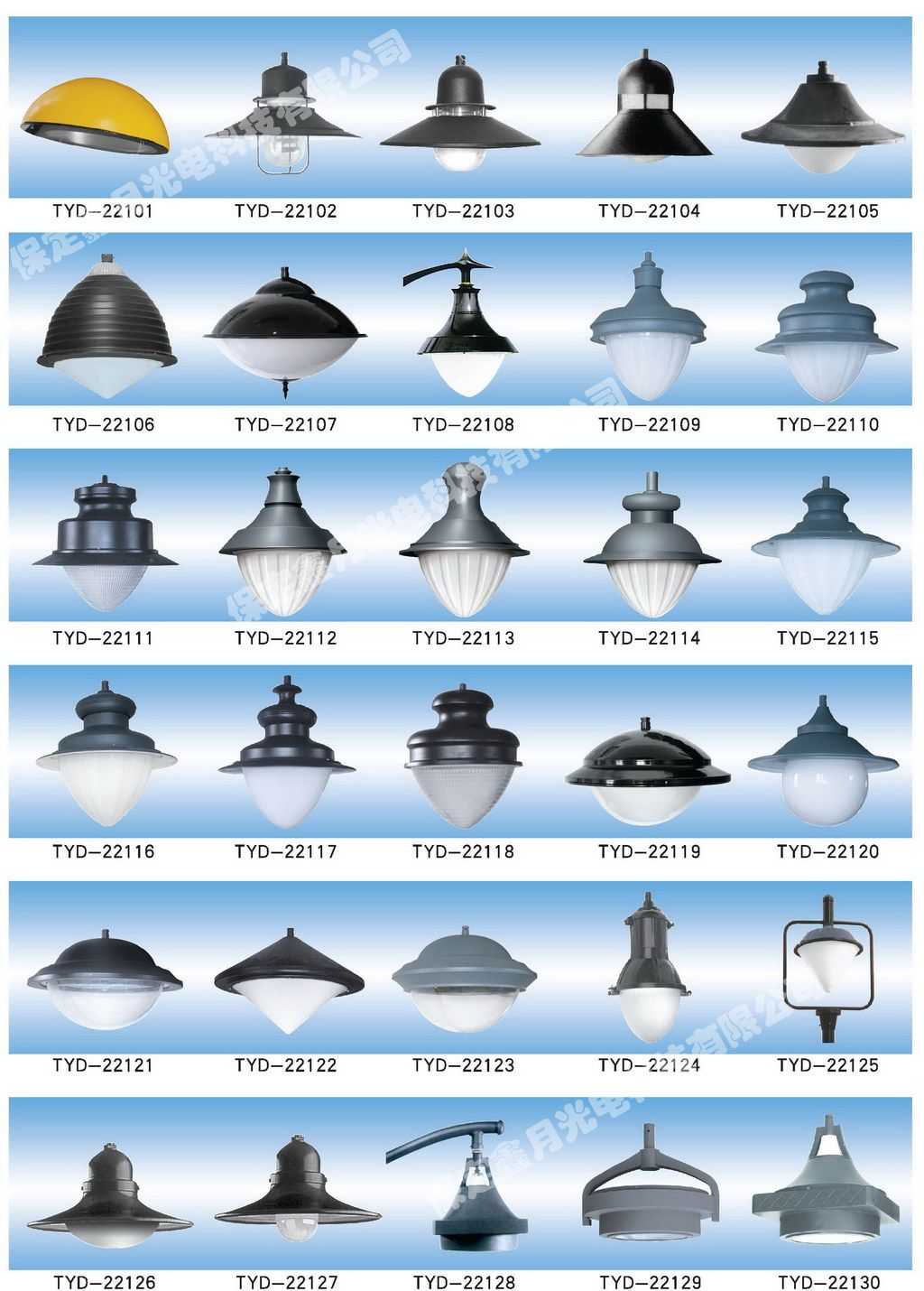 鑫月光電庭院燈燈頭圖集,為您介紹我公司庭院燈燈頭產品畫冊